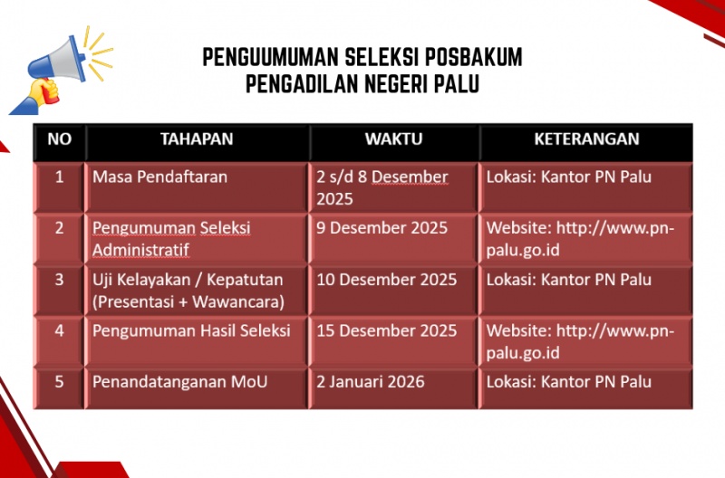 Dokumen : Seleksi Posbakum PN Palu Tahun 2026
