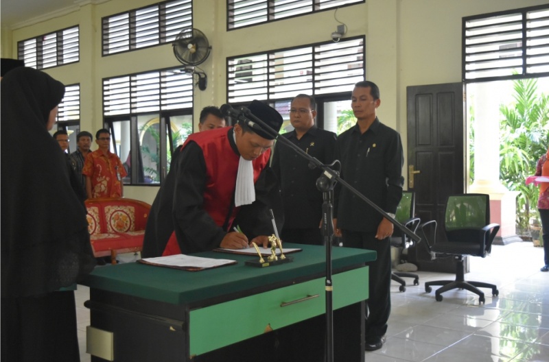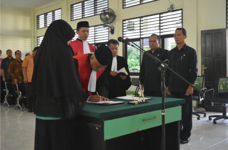 Palu, 01 April 2016 - Ketua Pengadilan Negeri / PHI / Tipikor Palu Bpk H. Sutarto, SH., M.Hum. dalam acara Pengambilan Sumpah dan Pelantikan Hakim Ad Hoc PHI pada Pengadilan Negeri Palu yang dilaksanakan di Ruang Sidang Utama Pengadilan Negeri Palu melantikan Bpk. K.M. Rusdi, SE., M.H. dan Bpk. Suwardiyono, SH. sebagai Hakim Ad Hoc PHI Pengadilan Negeri Palu.