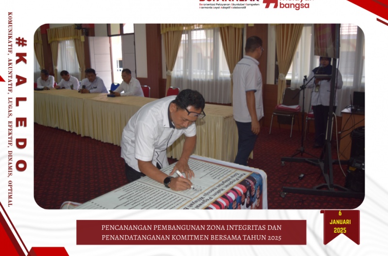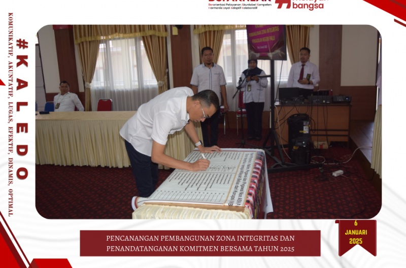 Palu, 6 Januari 2025, Bertempat di Room Meeting Pengadilan Negeri Palu telah dilaksanakan Pencanangan Pembangunan Zona Integritas dan Penandatanganan Komitmen Bersama oleh seluruh Hakim, Pejabat Struktural, Pejabat Fungsional, dan seluruh Pegawai Pengadilan Negeri Palu.