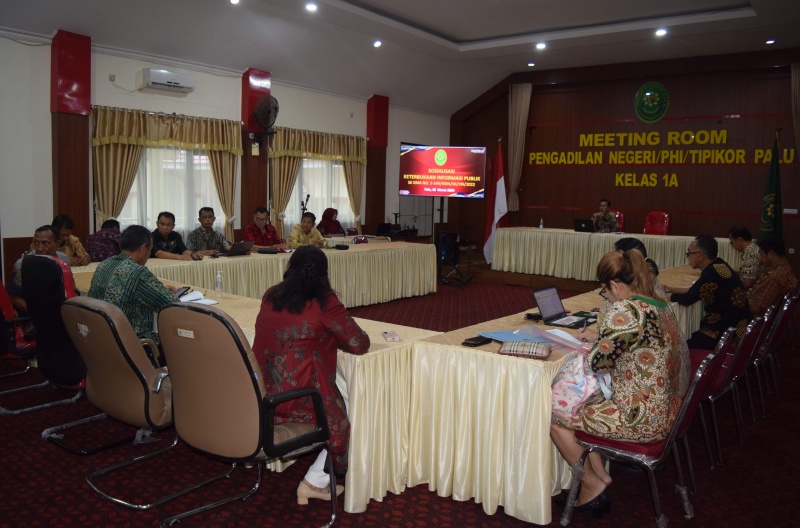 Palu, 28 Maret 2024, Bertempat di Room Meeting Pengadilan Negeri Palu telah dilaksanakan Sosialisasi Keterbukaan Informasi Publik sebagai mana diatur dalam SK Ketua Mahkamah Agung RI No. 2-144/KMA/VIII/2022 tentang Standar Pelayanan Informasi Publik di Pengadilan.