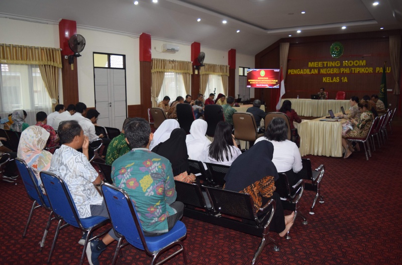 Ketua Pengadilan Negeri Palu YM. Bpk. Chairil Anwar, S.H., M.H. sebagai narasumber acara sosialisasi tersebut yang dihadiri oleh seluruh Hakim, Pejabat Fungsional dan Struktural, selurh staf dan PPNPN PN Palu.